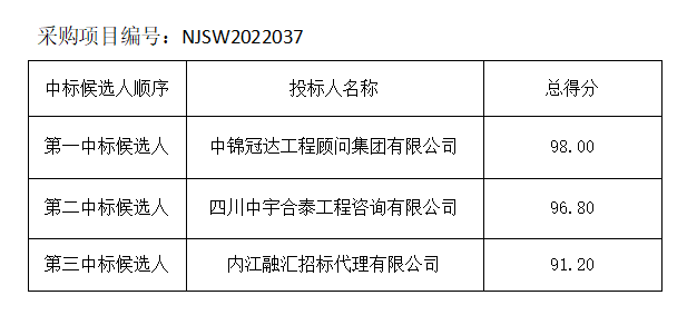 內(nèi)江市水務(wù)有限責(zé)任公司招標(biāo)代理機構(gòu)服務(wù)供應(yīng)商采購項目評標(biāo)結(jié)果公示