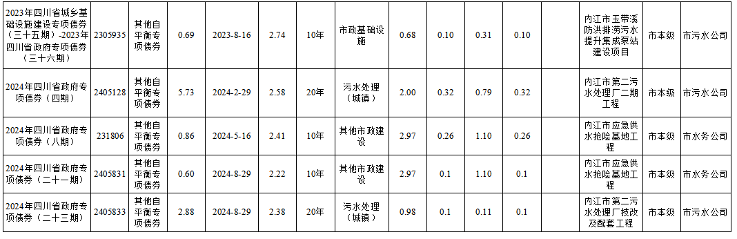 截至2024年末新增地方政府專項債券情況表