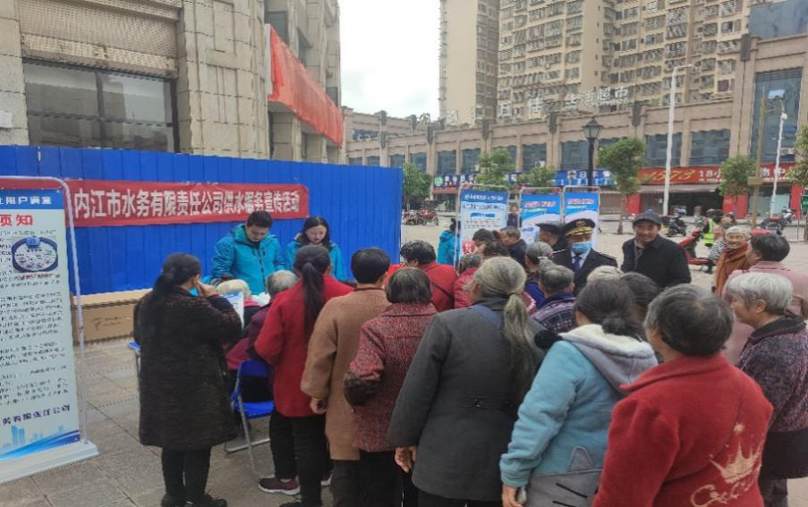 10月27日下午,市水務(wù)公司客戶(hù)服務(wù)部、生技部、二次供水服務(wù)公司聯(lián)合開(kāi)展了宣傳進(jìn)社區(qū)活動(dòng)。工作人員統(tǒng)一著裝,黨員佩戴黨徽,現(xiàn)場(chǎng)與內(nèi)江市漢祥小區(qū)居民開(kāi)展“面對(duì)面、零距離”交流。講解二次供水、階梯水價(jià)、垃圾處理費(fèi)、水費(fèi)單價(jià)生成等用戶(hù)關(guān)心的問(wèn)題,并提倡大家節(jié)約用水,宣傳水資源的重要性。