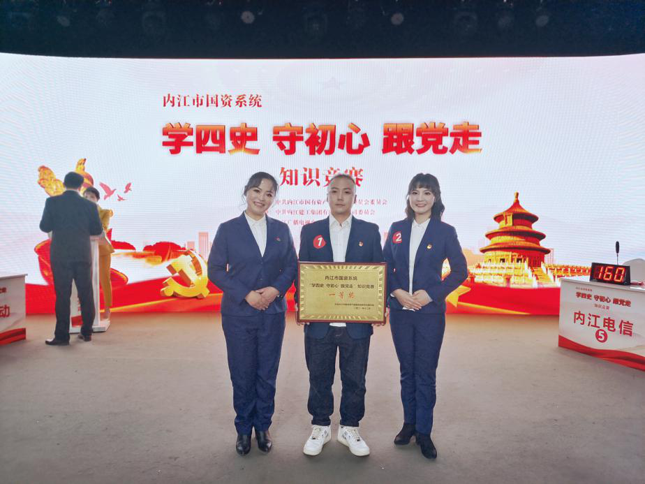 2021年12月28日下午,由中共內江市國有資產監督管理委員會委員會主辦,中共內江建工集團有限責任公司委員會承辦的內江市國資系統“學四史 守初心 跟黨走”知識競賽在內江廣播電視臺演播大廳舉行。來自市級各企業的8支隊伍24名選手參賽,我司選派的劉梅、袁琳、熊瑞凱3名同志代表參加了此次競賽。