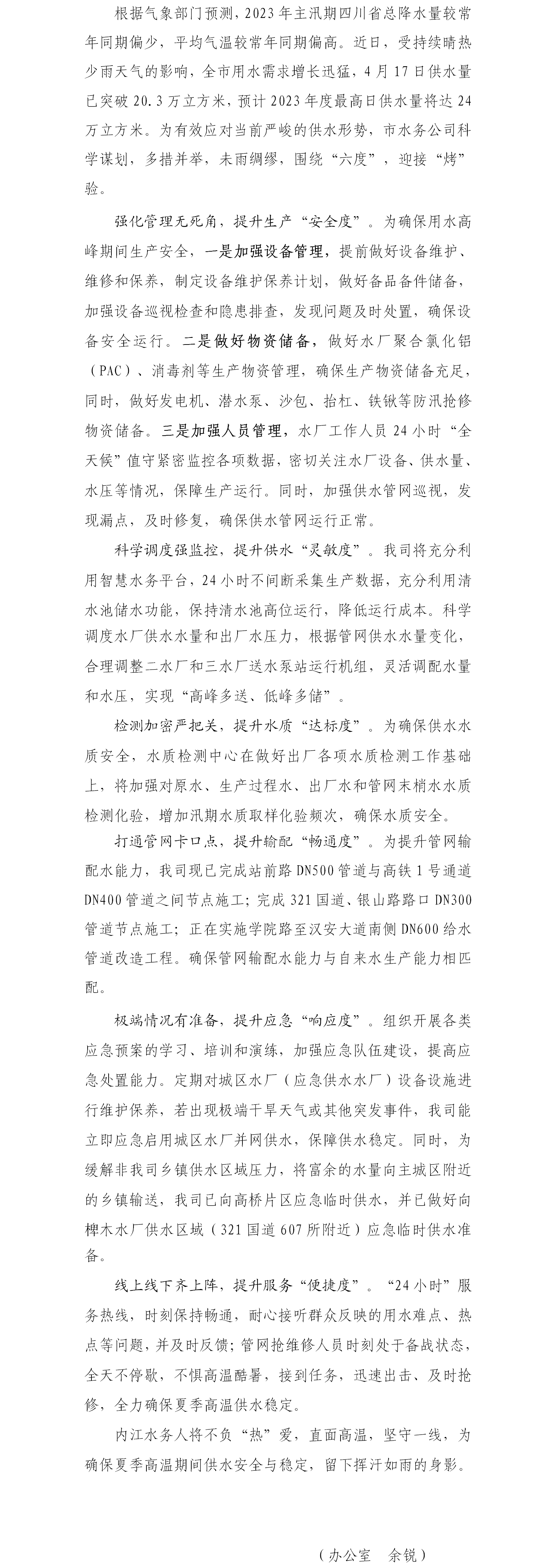 未雨綢繆保供水,無(wú)懼炙烤迎酷暑