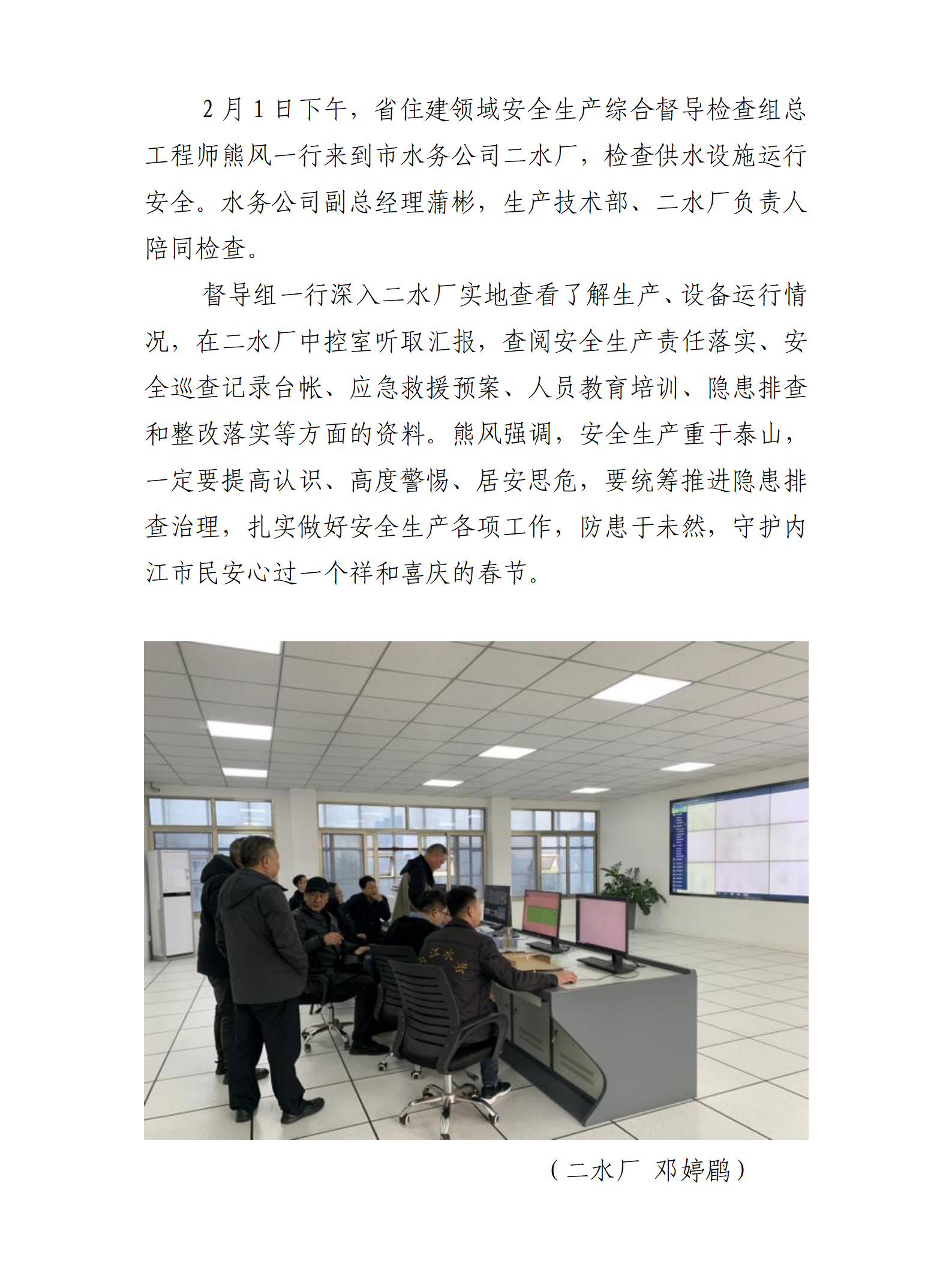 省住建安全生產督導組到二水廠進行安全生產檢查