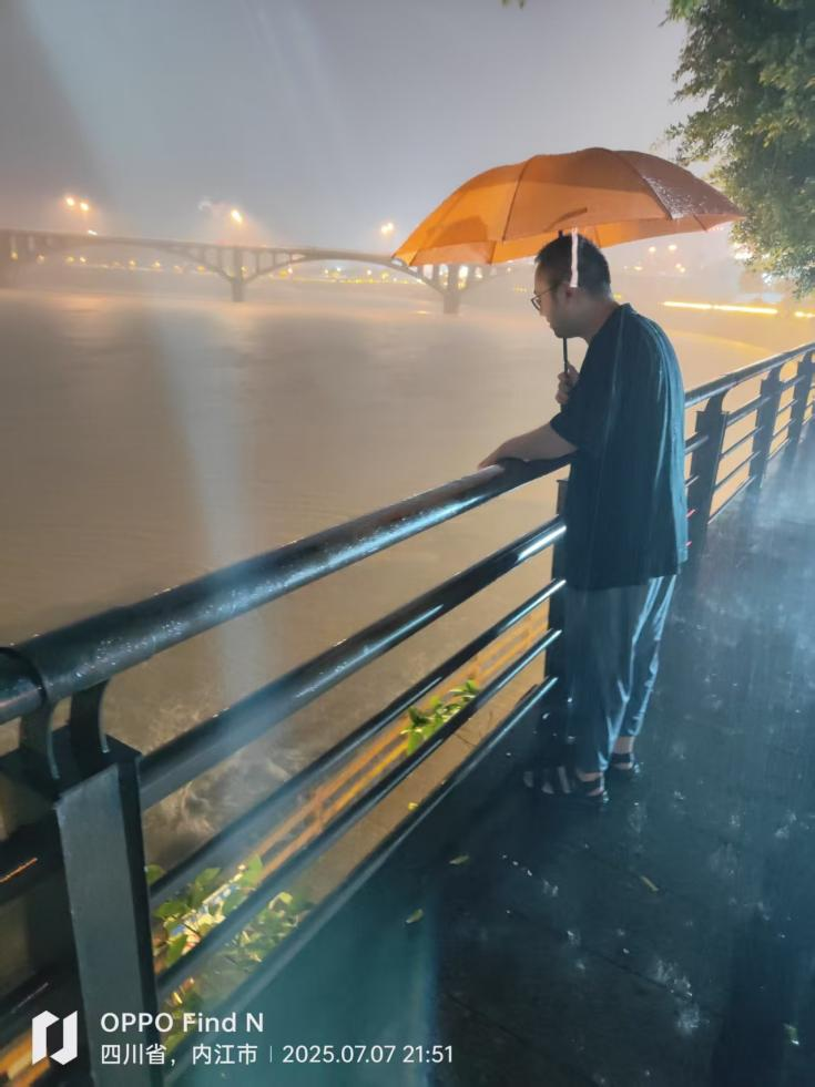 7月7日晚,受強降雨天氣影響,沱江河水位急劇上升,市區局部地區遭遇暴雨。為確保廠外泵站的安全及正常運行,防范內澇風險,當晚22時,市污水處理公司副經理李昊謙迅速組織廠外巡視人員,對廠外泵站開展緊急排查。