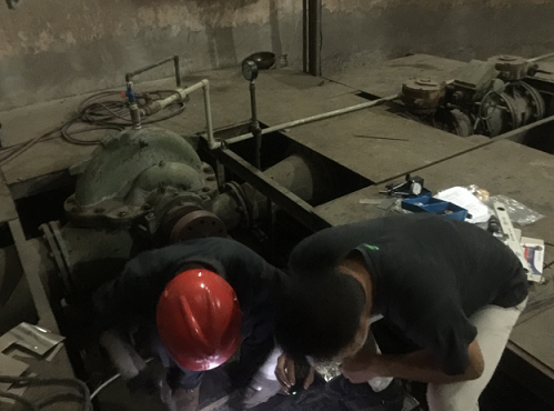 7月24日,在大家的齊心協力下,電機安裝完成,檢測機、泵同心度較好。7月25日,電機試運行,聲音、振動符合要求。